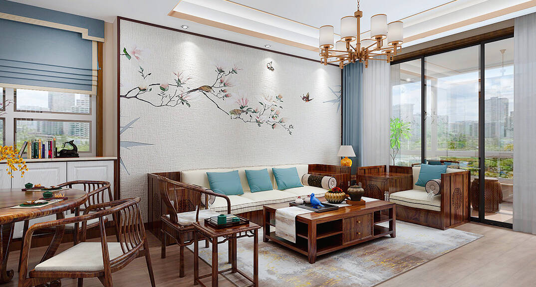 新中式風格非常講究空間的層次感,依據住宅使用人和私密程度的不同,需要做出分隔的功能性空間,一般采用"啞口"或簡約化的"博古架"來區(qū)分;在需要隔絕視線的地方,使用中式的屏風或窗欞,通過這種新的分隔方式,展現出中式家居的層次之美。空間裝飾多采用簡潔硬朗的直線條。直線裝飾在空間中的使用,不僅反映出現代人追求簡單生活的居住要求,更迎合了中式家具追求內斂、質樸的設計風格,使"新中式"更加實用、更富現代感。