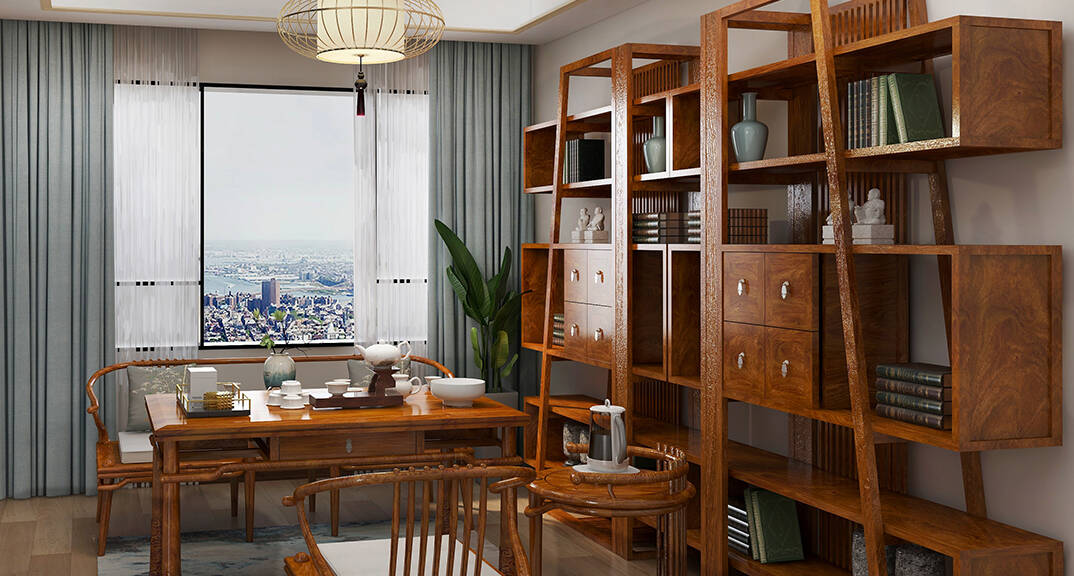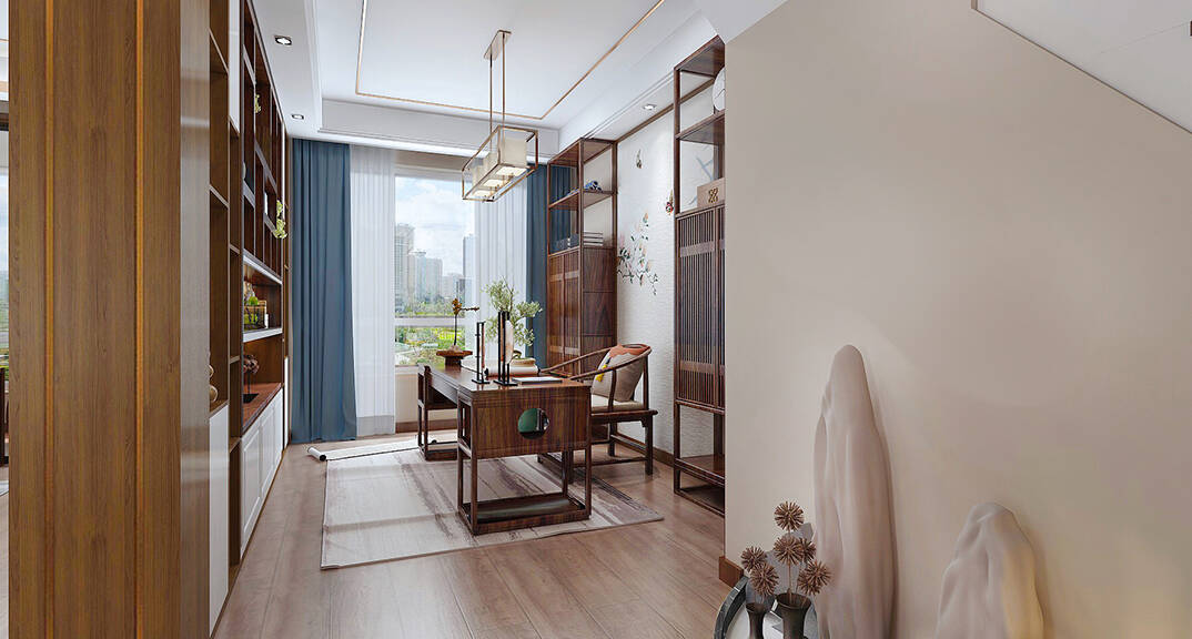 直線裝飾在空間中的使用,不僅反映出現代人追求簡單生活的居住要求,更迎合了中式家具追求內斂、質樸的設計風格,使"新中式"更加實用、更富現代感。