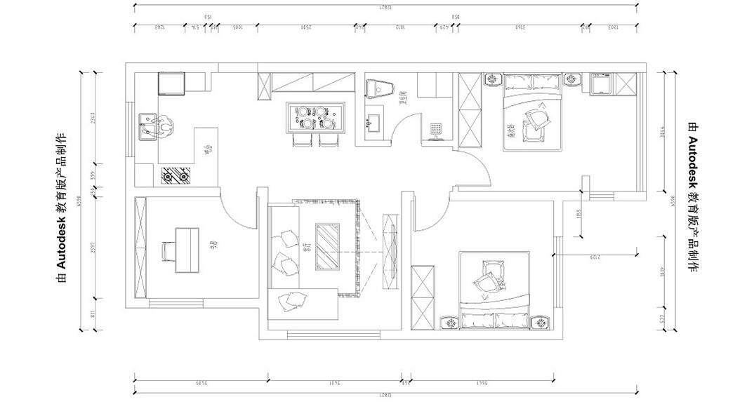 悅海地3室2廳100平美式風(fēng)格裝修戶(hù)型圖