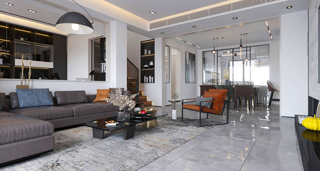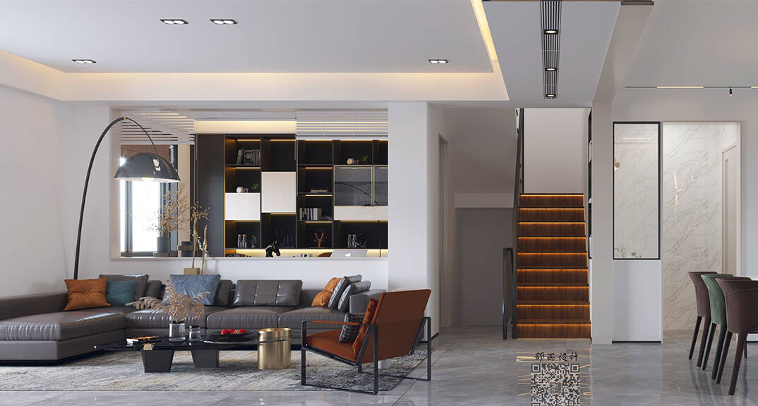 萊頓小鎮(zhèn)·海語墅250㎡別墅下疊一層客廳現(xiàn)代簡約風(fēng)格裝修案例效果圖