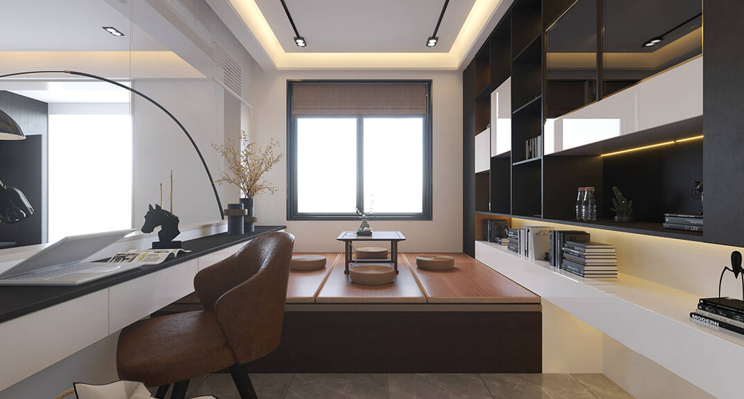 萊頓小鎮(zhèn)·海語墅250㎡別墅下疊二層書吧現(xiàn)代簡約風(fēng)格裝修案例效果圖