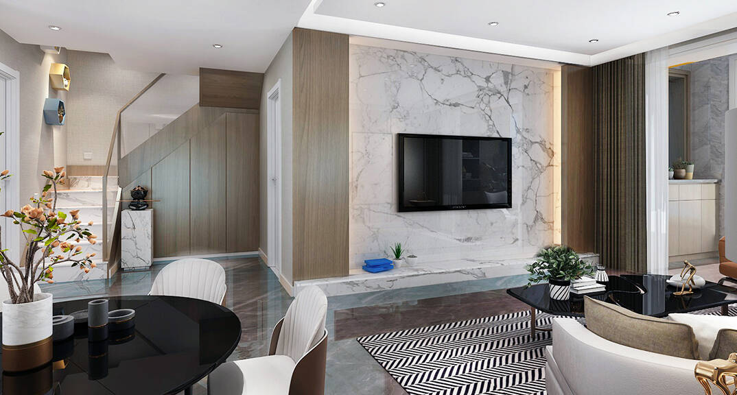 鑫江合院180㎡平層客廳輕奢風(fēng)格裝修案例效果圖