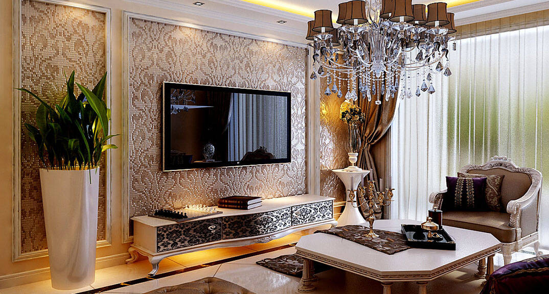 金鳳凰銘品 127㎡ 四室二廳一廚二衛(wèi) 歐式風(fēng)格客廳電視墻裝修效果圖