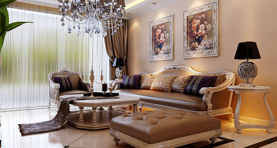 金鳳凰銘品 127㎡ 四室二廳一廚二衛(wèi) 歐式風(fēng)格客廳沙發(fā)裝修效果圖