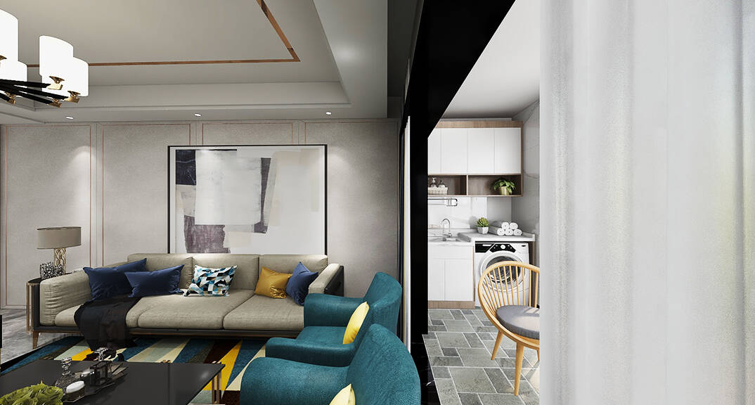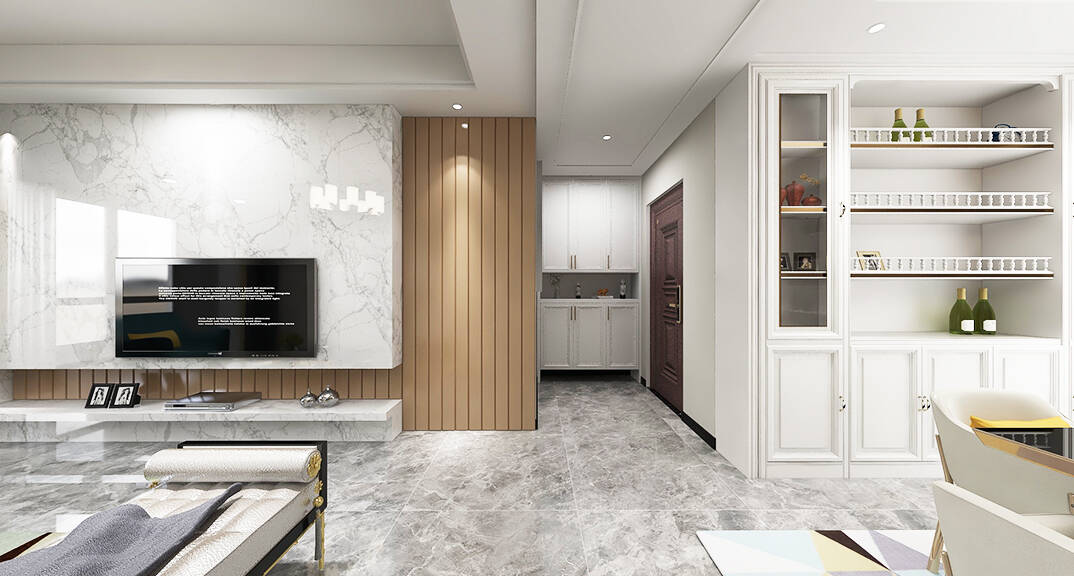 膠州機(jī)場(chǎng)公寓138㎡二室一廳客廳輕奢風(fēng)格裝修案例效果圖