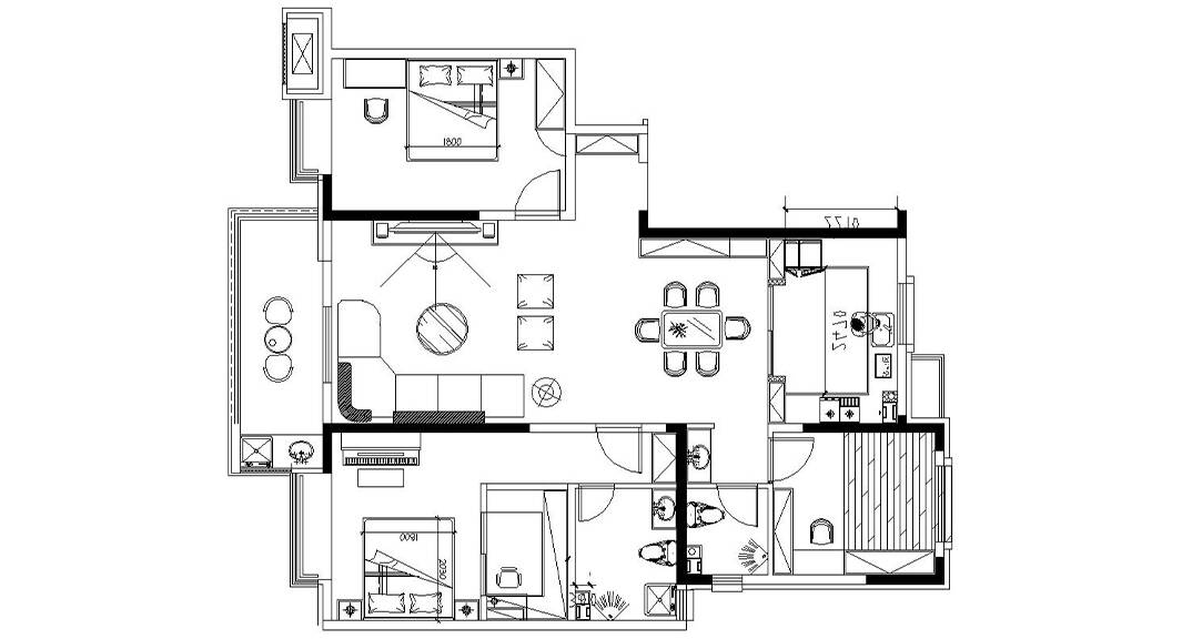 膠州機(jī)場(chǎng)公寓138㎡二室一廳輕奢風(fēng)格裝修戶型設(shè)計(jì)圖