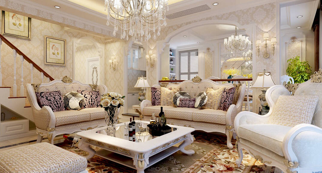 中海臨安府160m2別墅上疊一層客廳法式風格裝修案例效果圖