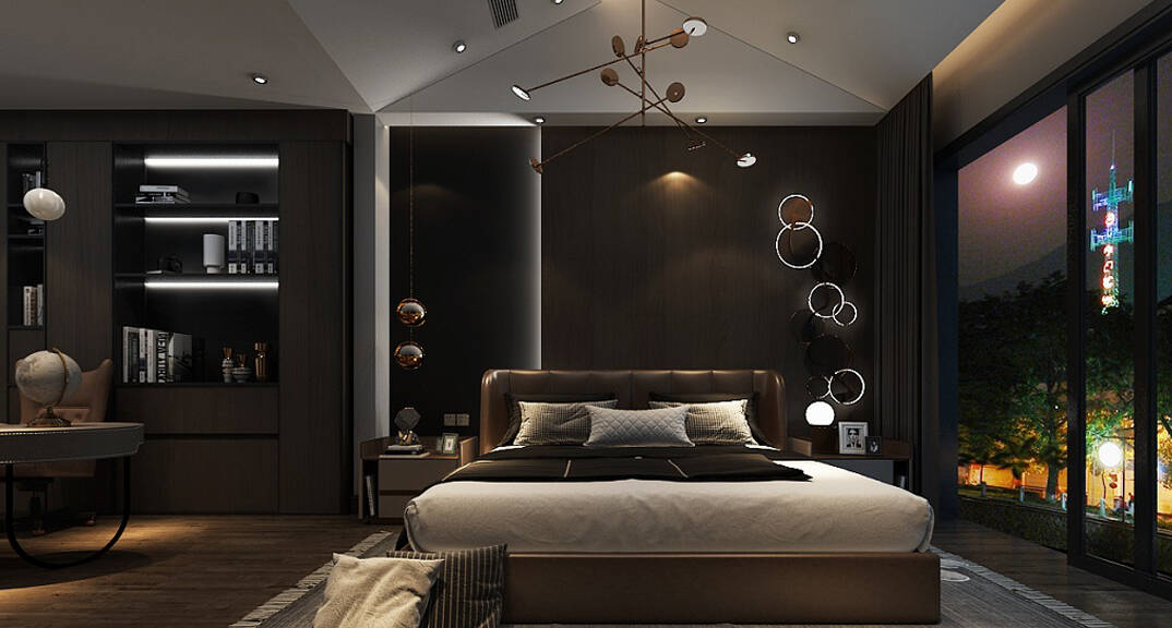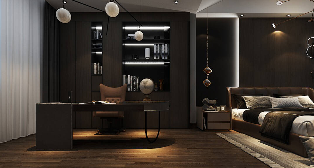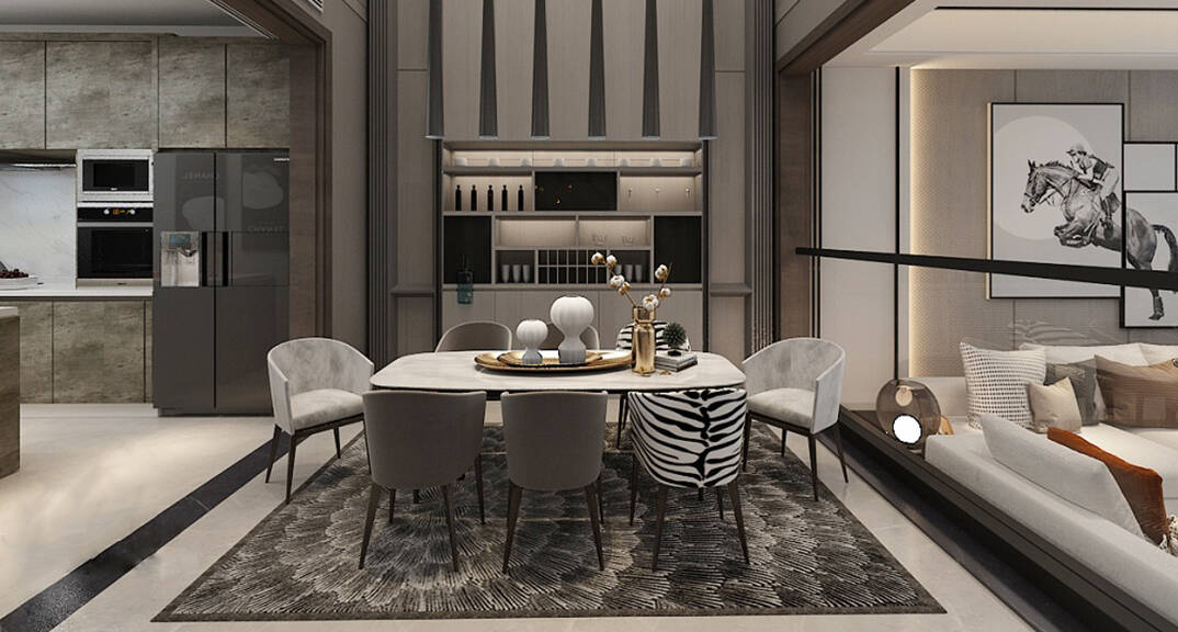 嶺海迪亞灣210平聯(lián)排別墅餐廳臥室書房現(xiàn)代風格裝修效果圖