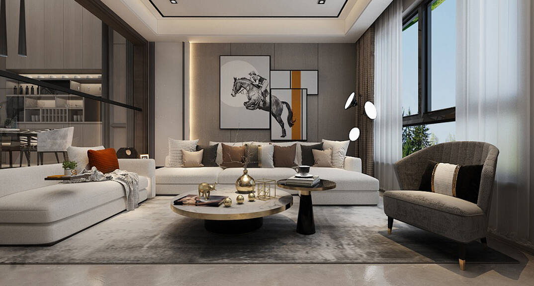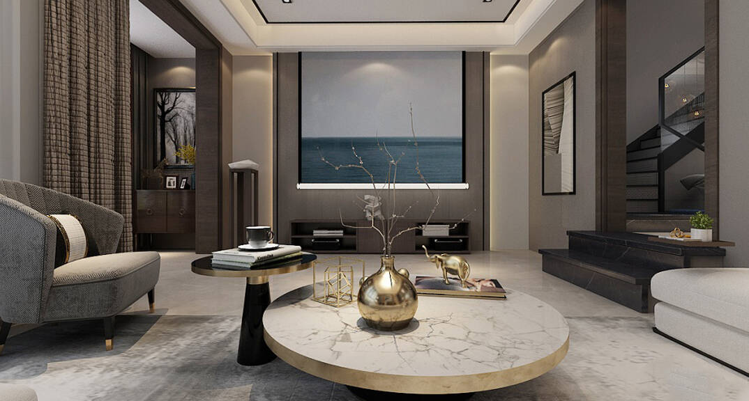 嶺海迪亞灣210平聯(lián)排別墅客廳現(xiàn)代風格裝修效果圖