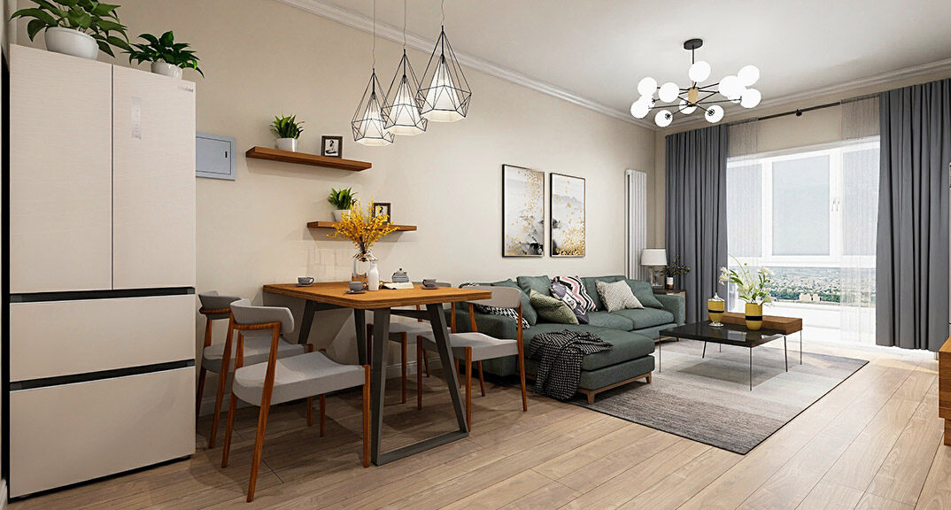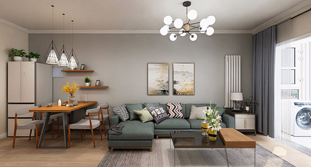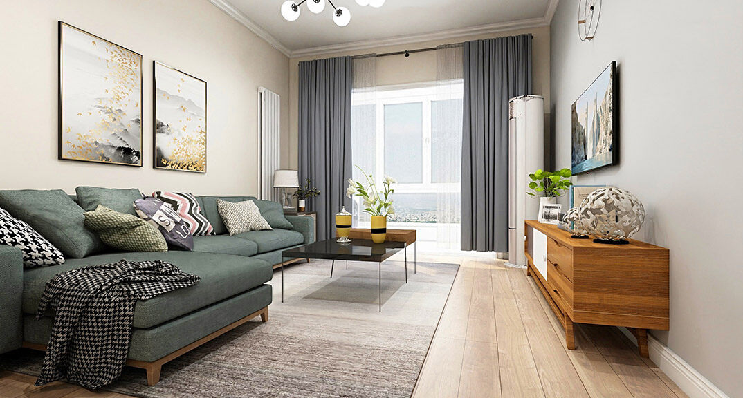 天一仁和瓏樾海89㎡三室兩廳一衛(wèi)客廳簡歐風格裝修研發(fā)效果圖