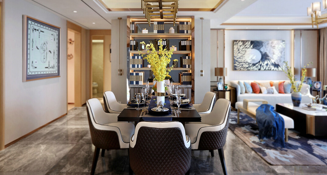 本案風(fēng)格定位為新中式客戶喜歡時(shí)尚的中式,不喜歡傳統(tǒng)紅木家具的感覺(jué),但是又需要帶中式元素,所以設(shè)計(jì)的時(shí)候采用現(xiàn)代手法結(jié)合中式元素特質(zhì)相結(jié)合把時(shí)尚現(xiàn)代感融入進(jìn)此空間中,與傳統(tǒng)中式家具上多了一些生活的氣息,墻面以白色乳膠漆為主,新中式風(fēng)格的設(shè)計(jì)也遵循著對(duì)稱性的家具擺放,在頂部設(shè)計(jì)上,設(shè)計(jì)師運(yùn)用燈光很好的劃分空間的格局,吊頂簡(jiǎn)約的設(shè)計(jì)形式,使得室內(nèi)有居家的氛圍在色彩上也是中性化元素多一些,采用硬朗簡(jiǎn)潔的直線條,空間層次感,符合客戶想要的感覺(jué)。