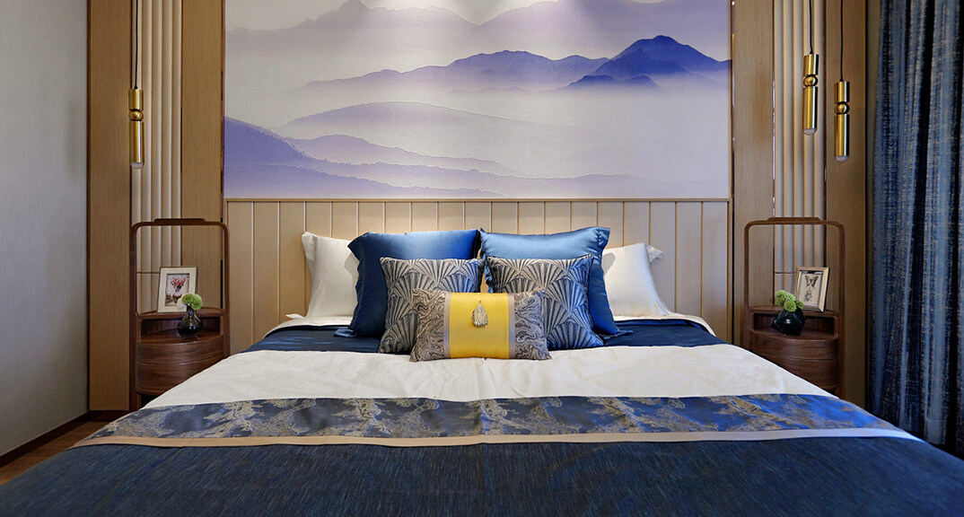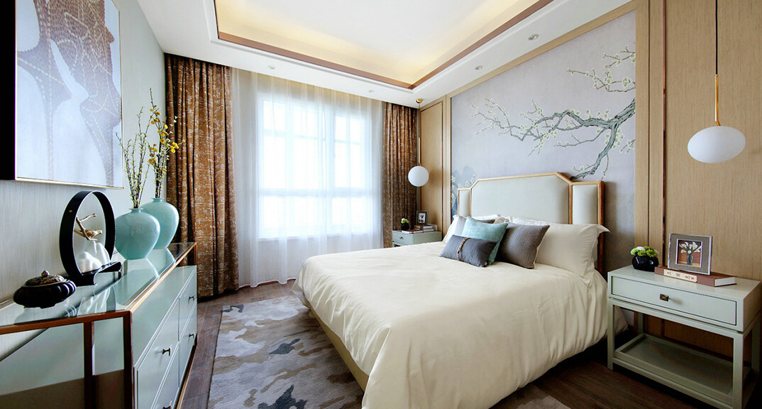 桃李芳菲2室1廳1廚2衛(wèi)97㎡主臥新中式風(fēng)格案例效果圖