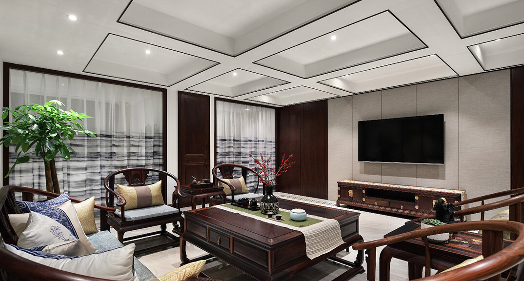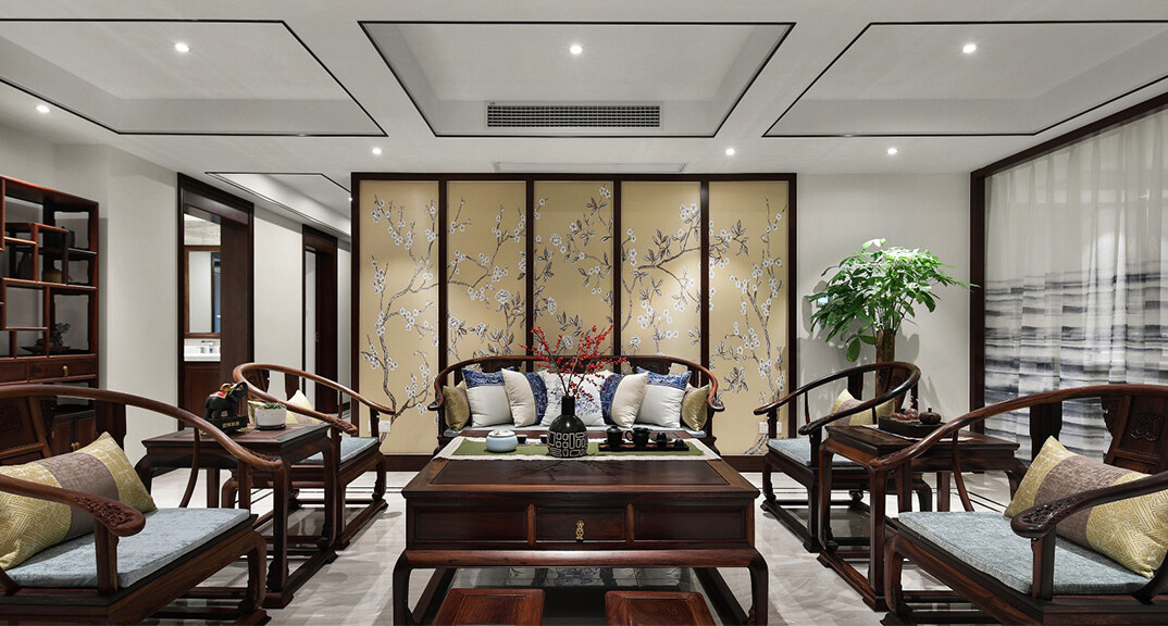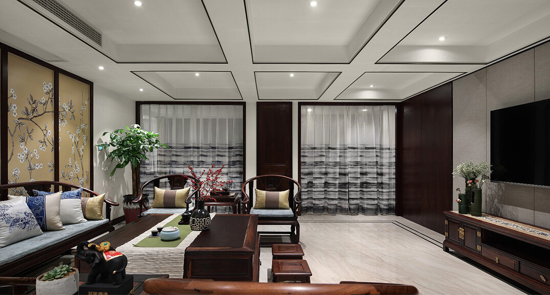桃李芳菲4室2廳1廚3衛(wèi)181㎡客廳中式古典風(fēng)格裝修效果圖