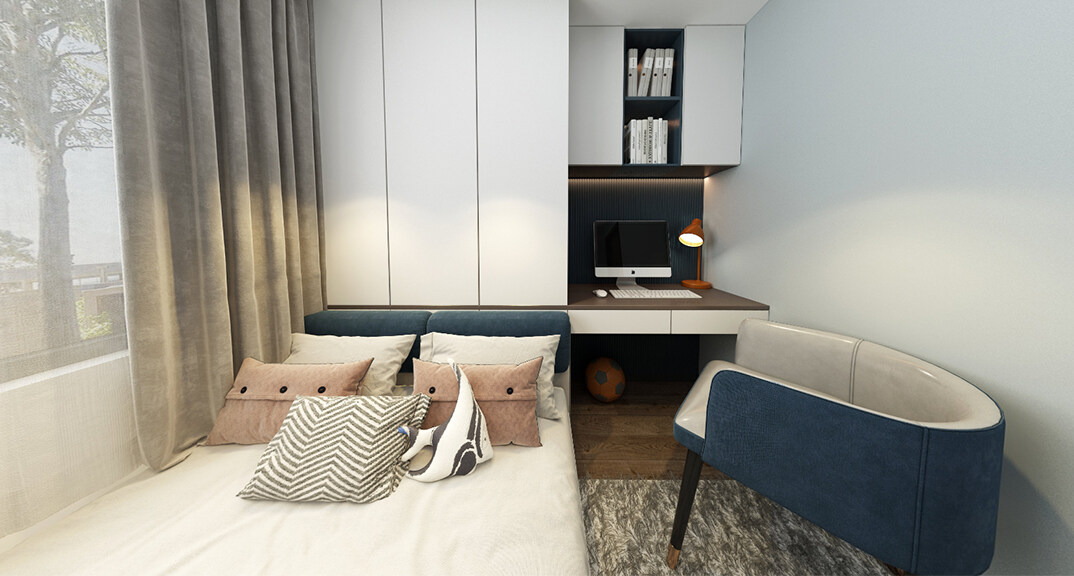 青安·海悅居86㎡二室二廳次臥新中式風格裝修案例效果圖