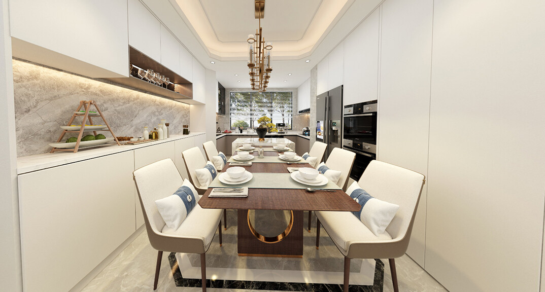 青安·海悅居86㎡二室二廳客餐廳新中式風格裝修案例效果圖