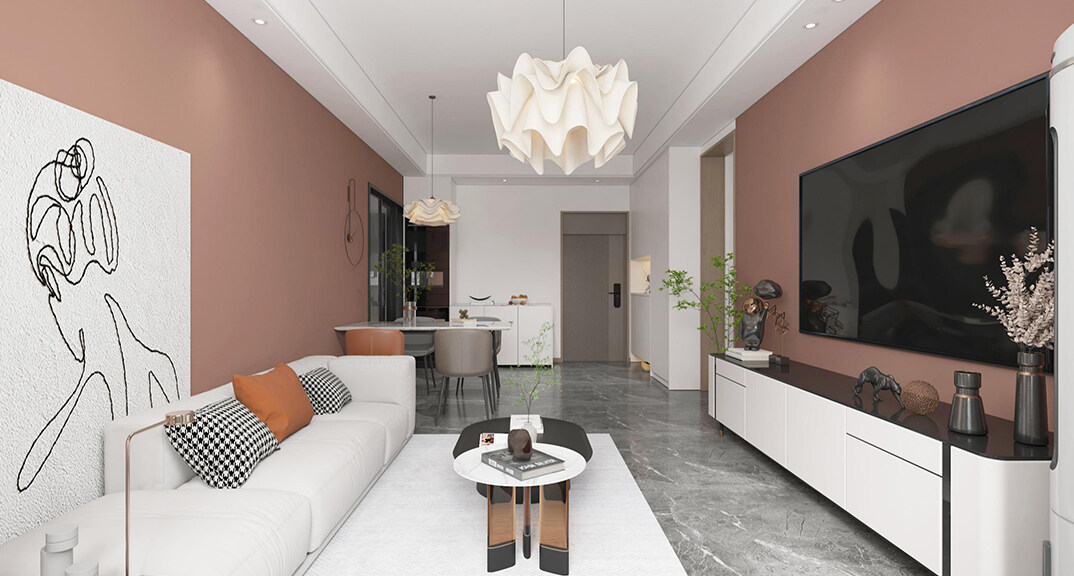 青安·海悅居86㎡二室二廳客廳現(xiàn)代風(fēng)格裝修案例效果圖