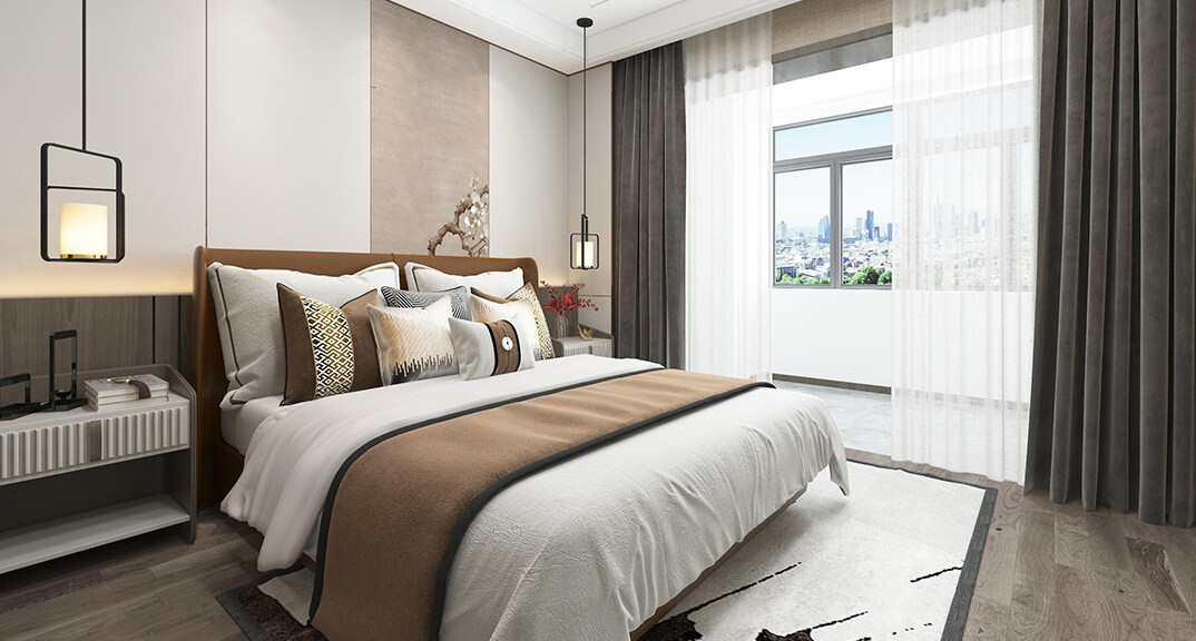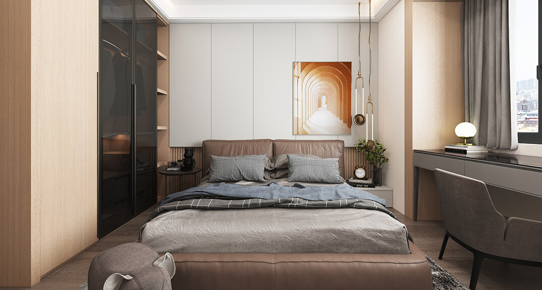 青安·海悅居86㎡二室二廳主臥現(xiàn)代風(fēng)格裝修案例效果圖
