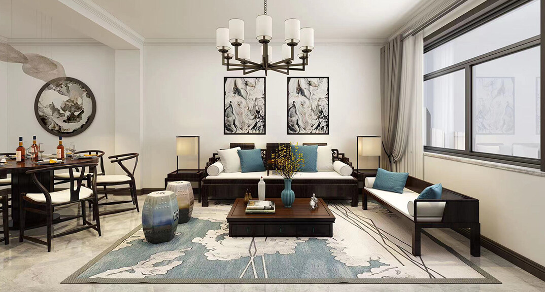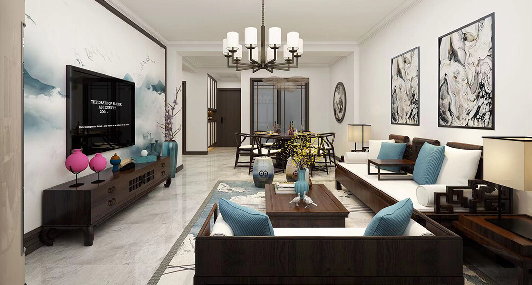 鑫江華府150㎡別墅上疊客廳新中式風(fēng)格裝修案例效果圖