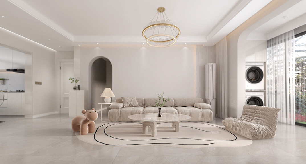 青建依山半島103㎡三室兩廳客廳簡(jiǎn)約風(fēng)格裝修案例效果圖