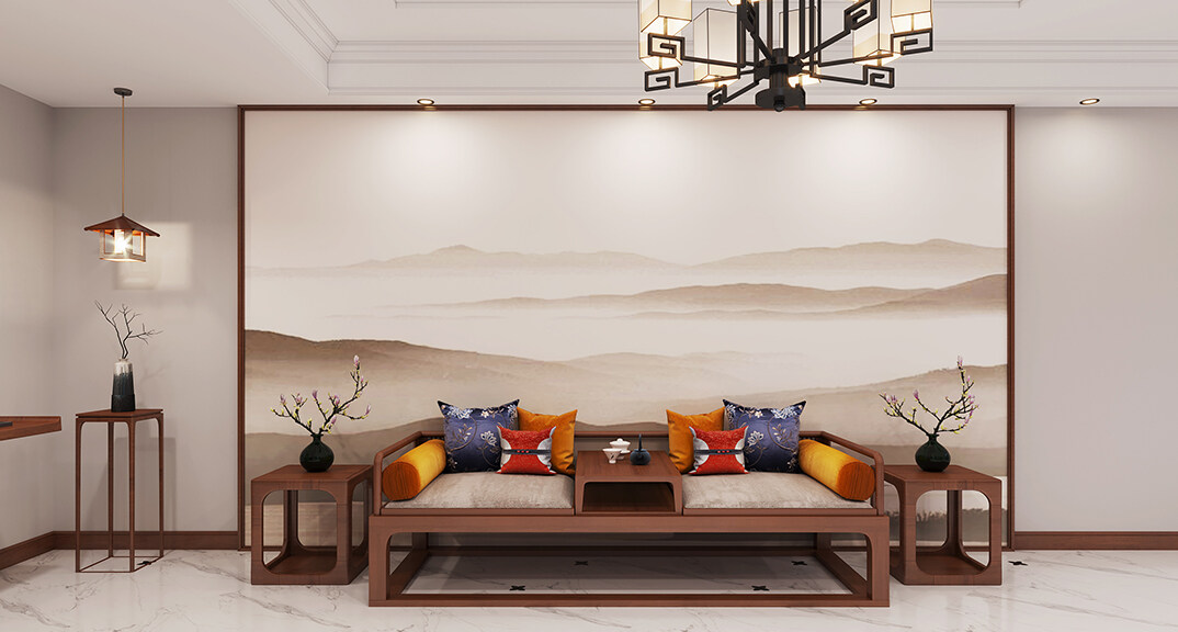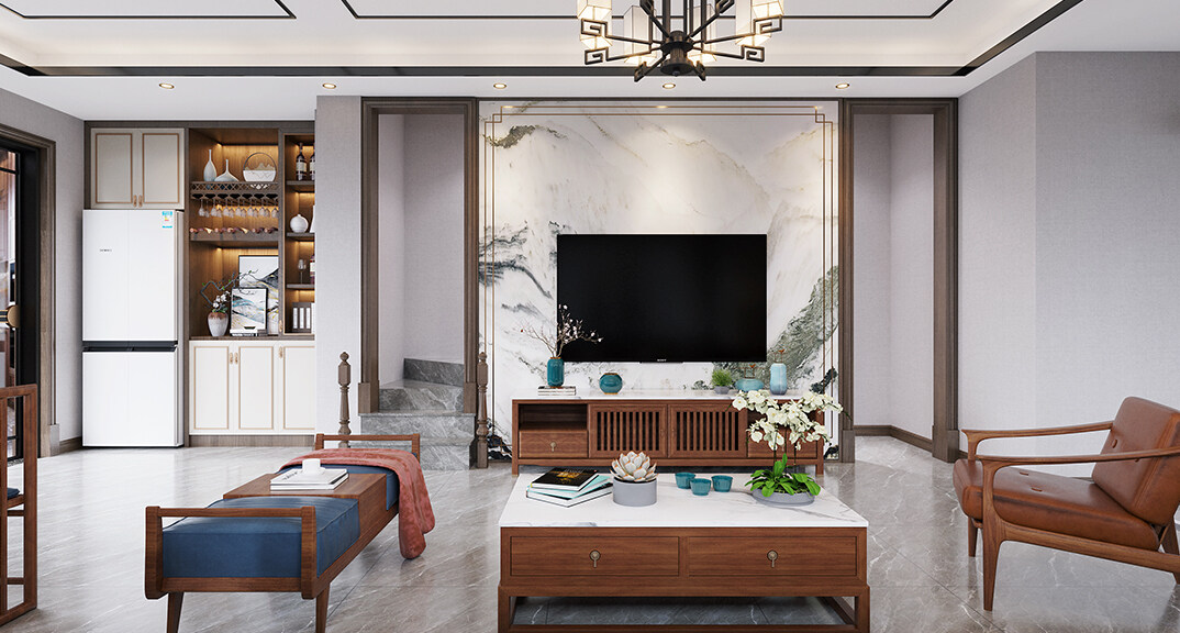 紫荊閣150㎡別墅下疊新中式風(fēng)格裝修案例效果圖