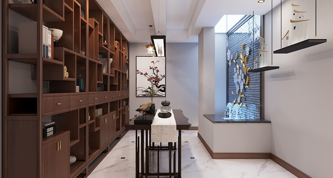 紫荊閣150㎡別墅下疊書(shū)房新中式風(fēng)格裝修案例效果圖