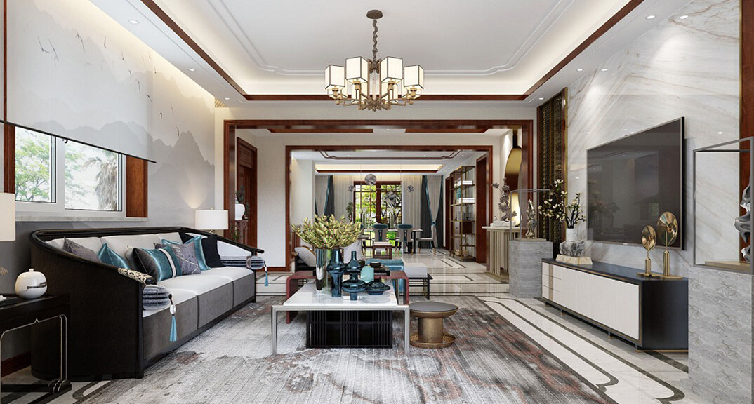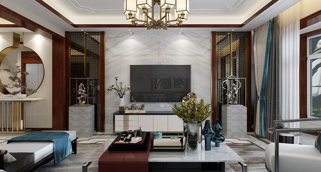 龍湖原山400㎡別墅客廳電視美式風格裝修案例效果圖
