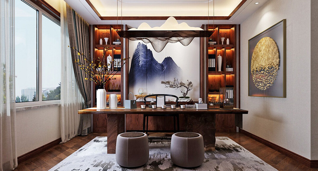 龍湖原山400㎡別墅書房美式風格裝修案例效果圖