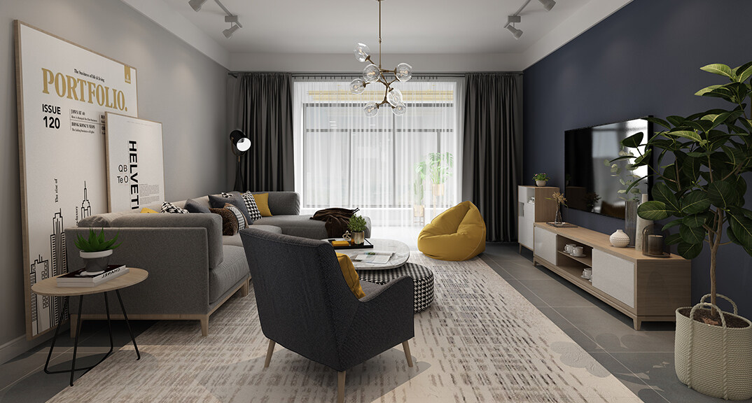 永利國際134㎡三室兩廳客廳北歐風格裝修案例效果圖