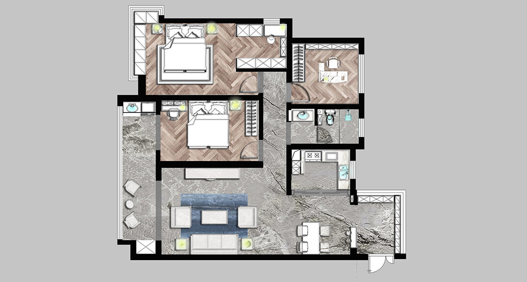 壹號學(xué)府132㎡三室兩廳次臥美式風(fēng)格裝修案例效果圖