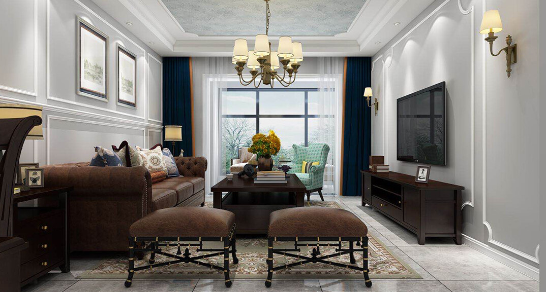 壹號學(xué)府132㎡三室兩廳客廳美式風(fēng)格裝修案例效果圖
