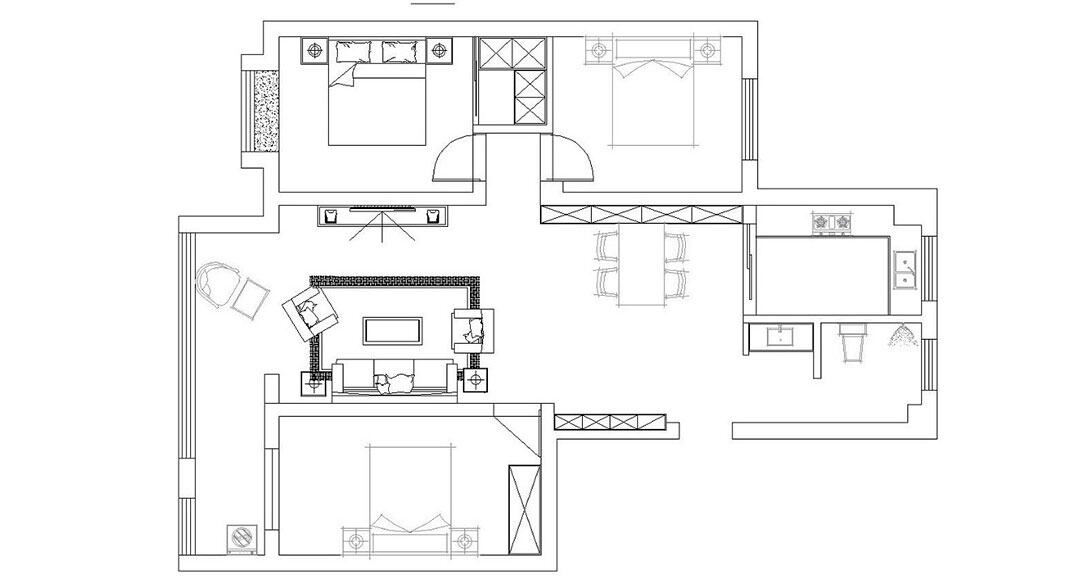 裕升華庭123㎡三室兩廳次臥美式風格裝修案例效果圖