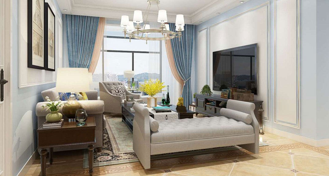 裕升華庭123㎡三室兩廳客廳美式風格裝修案例效果圖