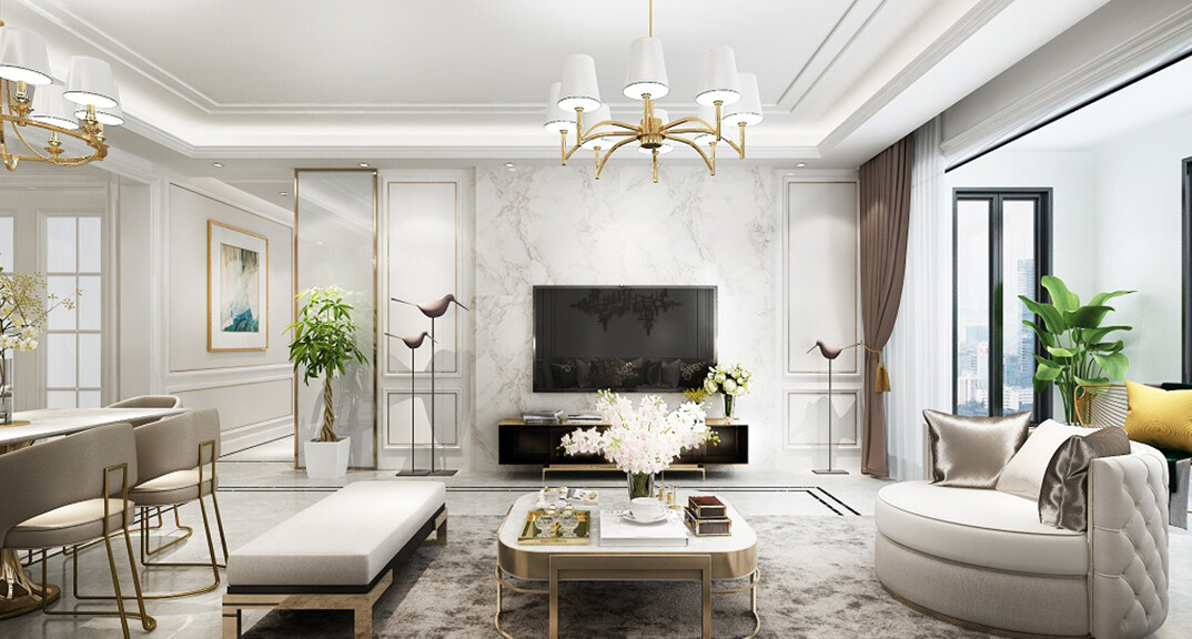 和達璟城128㎡洋房別墅客廳輕奢風(fēng)格裝修案例效果圖