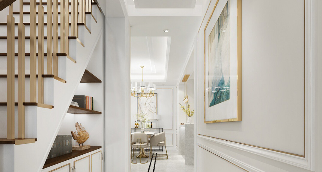 和達璟城128㎡洋房別墅樓梯走廊輕奢風(fēng)格裝修案例效果圖