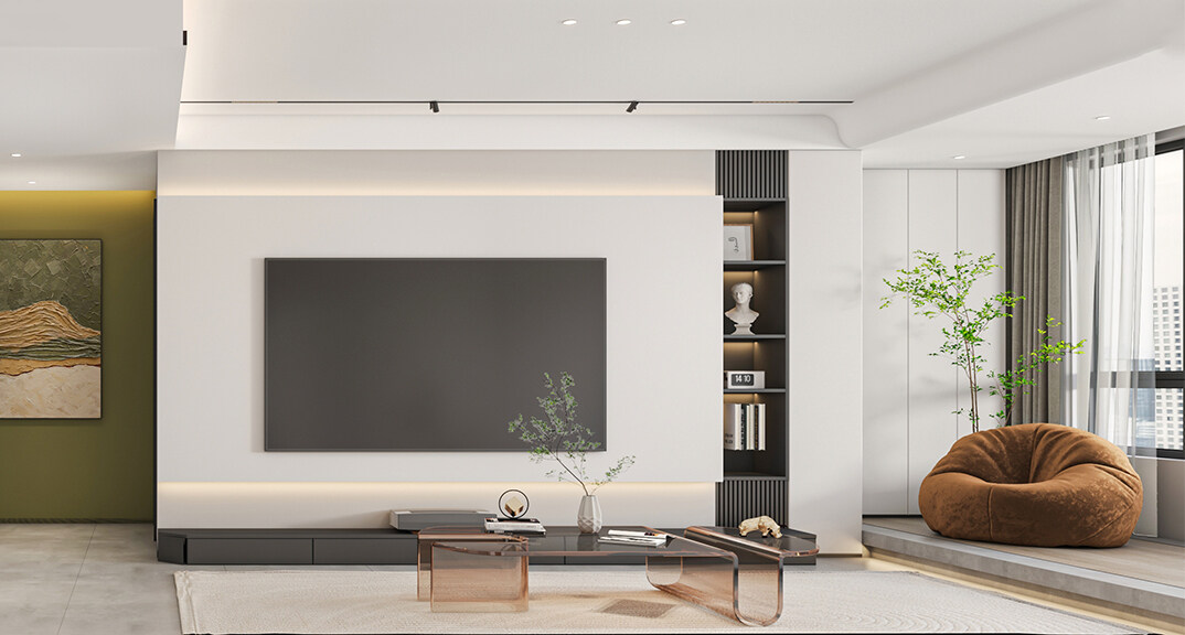 璞麗豪庭138㎡三室兩廳客廳電視現(xiàn)代簡(jiǎn)約風(fēng)格裝修案例效果圖