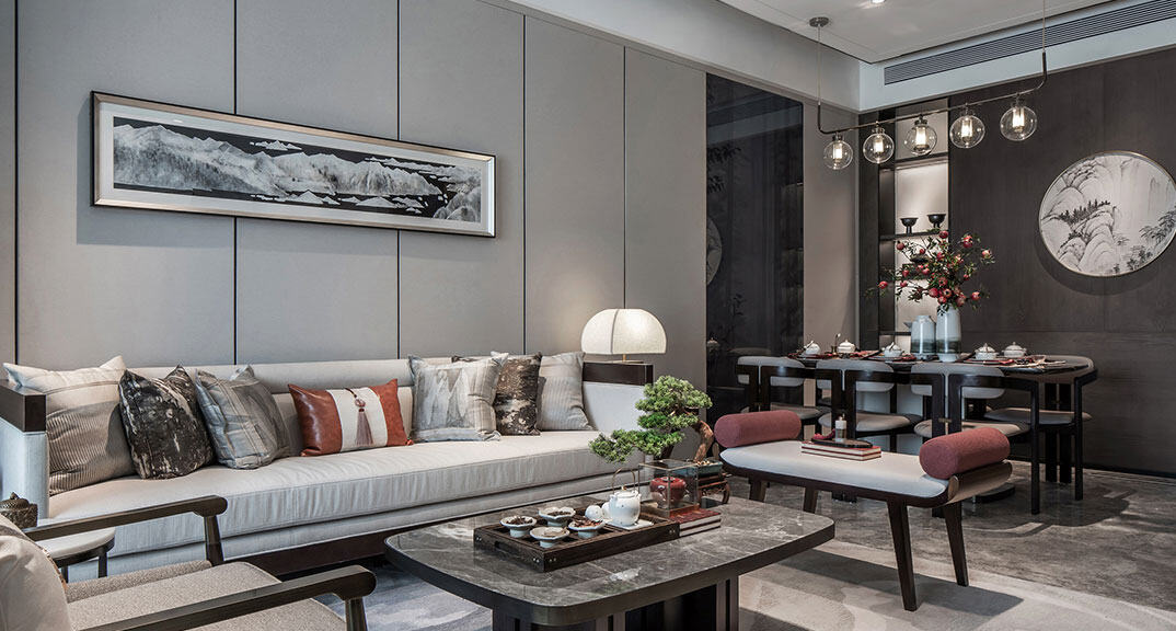 依云四季138㎡四室兩廳客廳沙發(fā)新中式風(fēng)格戶型研發(fā)案例效果圖