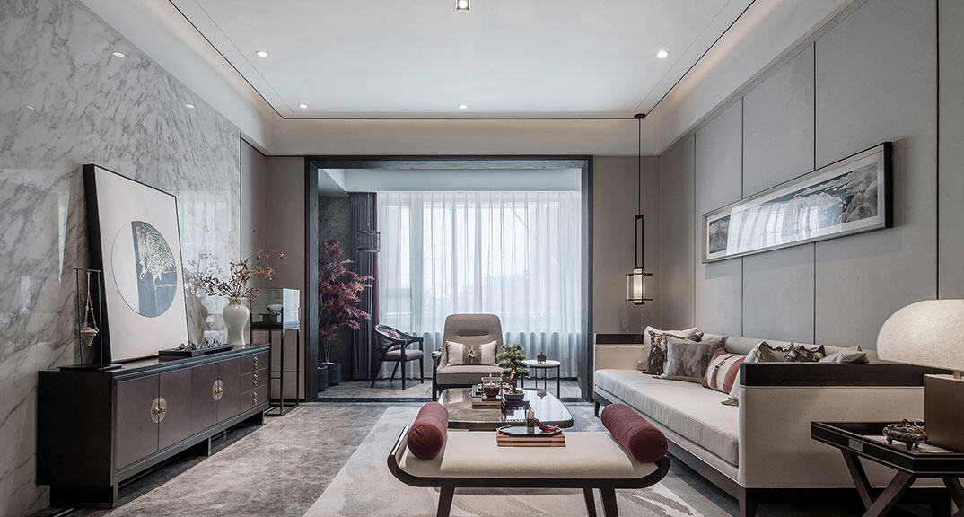 依云四季138㎡四室兩廳客廳新中式風(fēng)格戶型研發(fā)案例效果圖