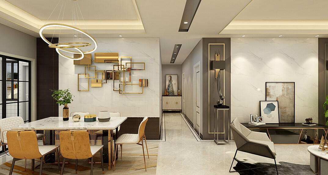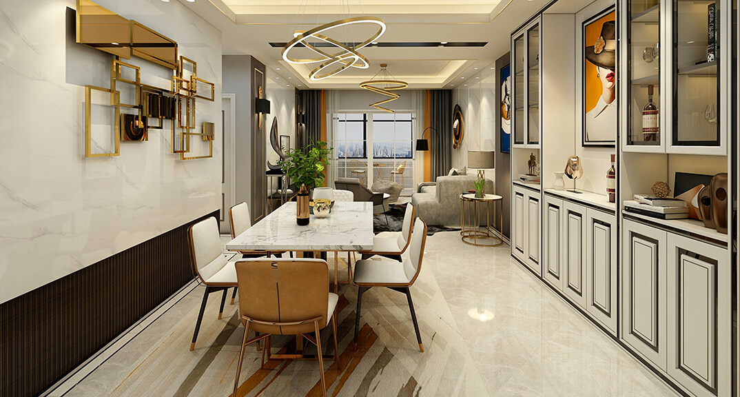 青特星城119㎡三室兩廳客餐廳現(xiàn)代風(fēng)格裝修案例效果圖