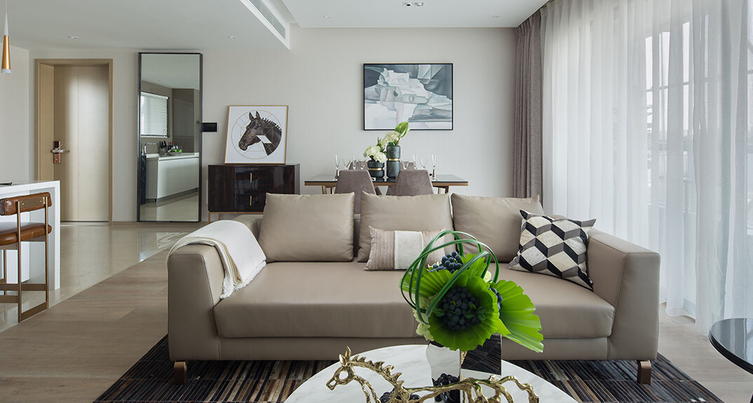 青特星城142㎡三室兩廳客廳沙發(fā)現(xiàn)代風格裝修案例效果圖