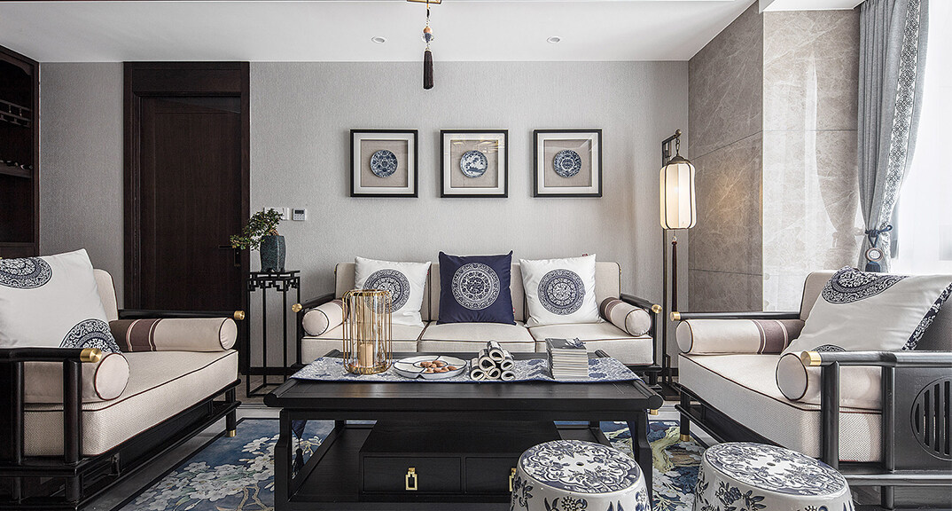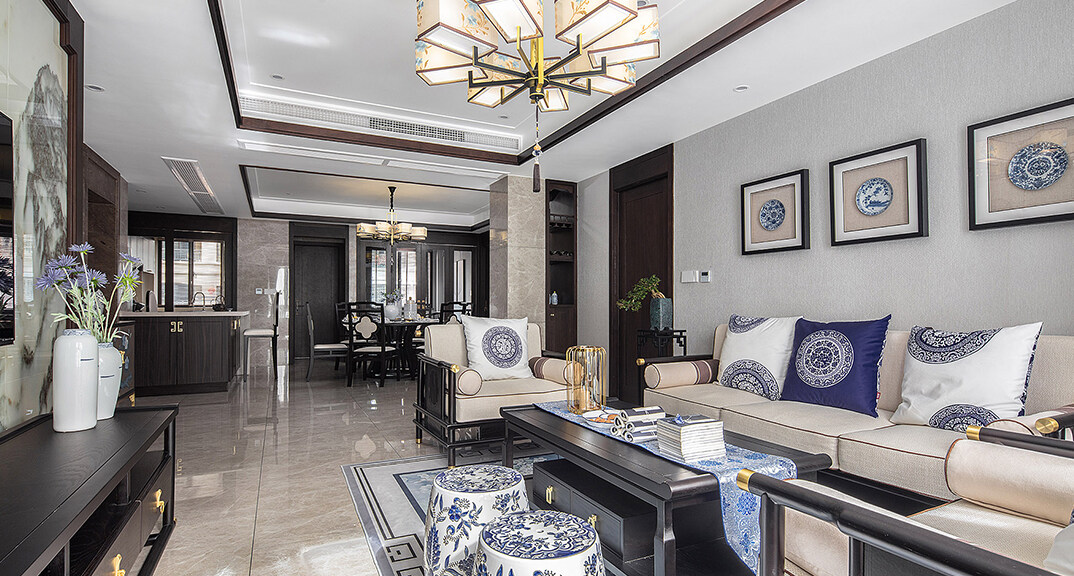 青特星城142㎡三室兩廳客廳新中式風(fēng)格裝修案例效果圖