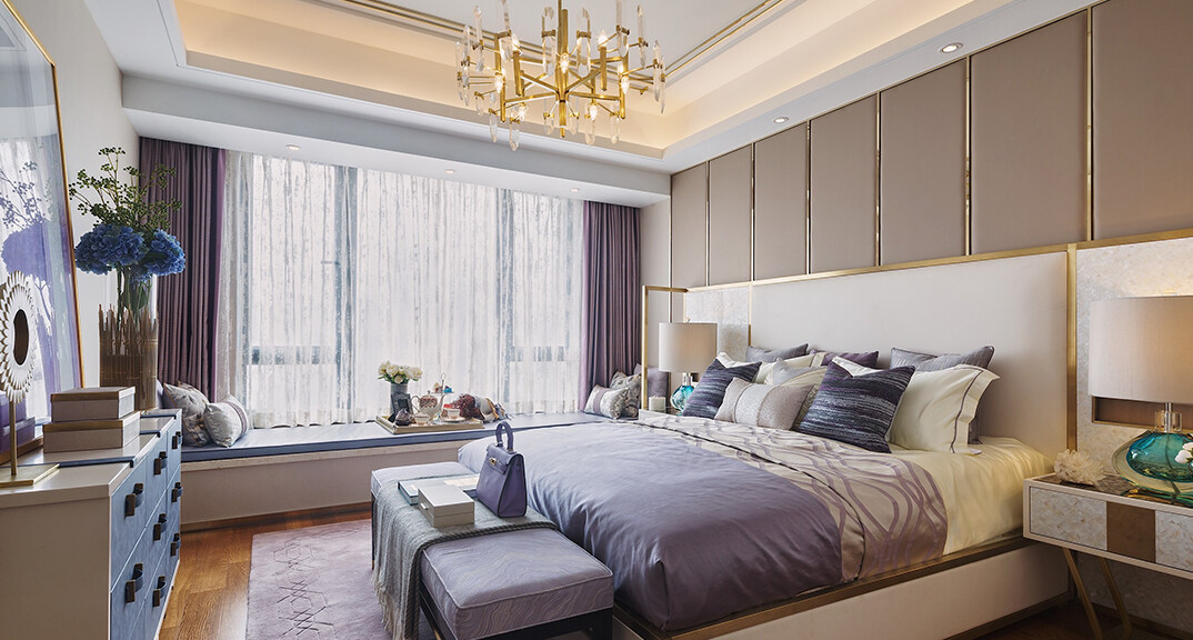 青特星城142㎡三室兩廳主臥簡(jiǎn)歐風(fēng)格裝修案例效果圖