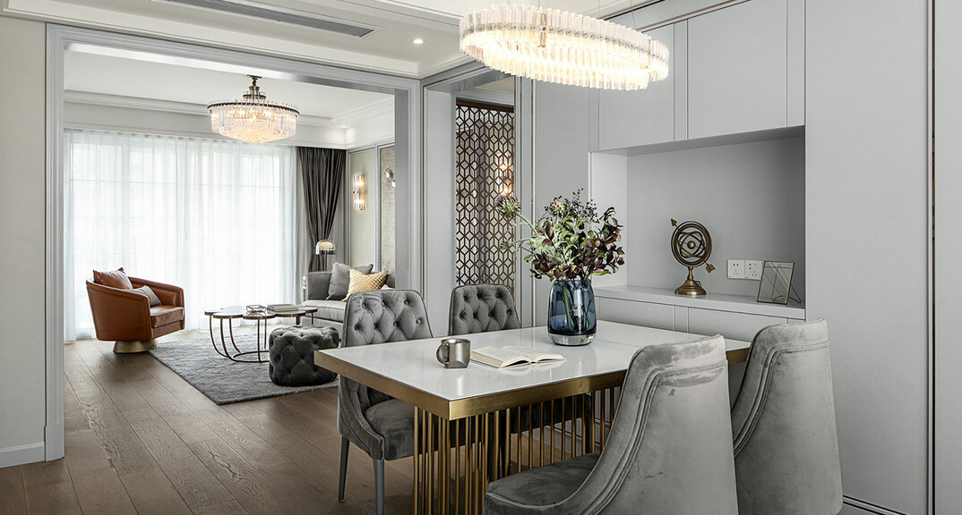 青特星城113㎡三室兩廳客餐廳美式風(fēng)格裝修案例效果圖