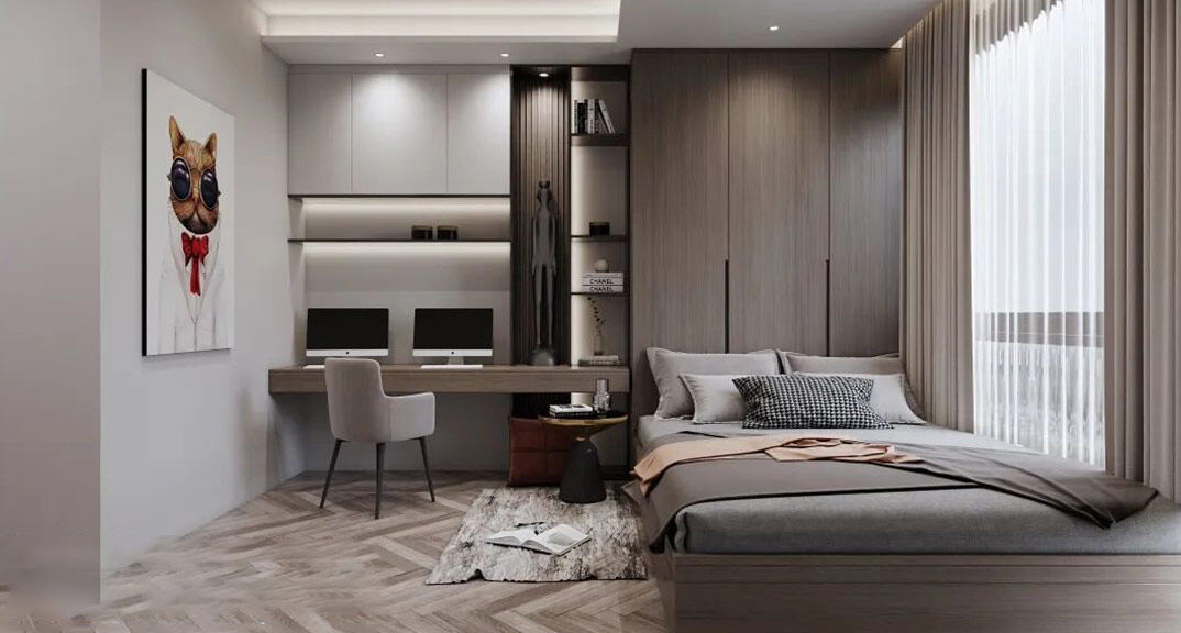 日鋼綠城300㎡別墅次臥現(xiàn)代輕奢風(fēng)格裝修案例效果圖