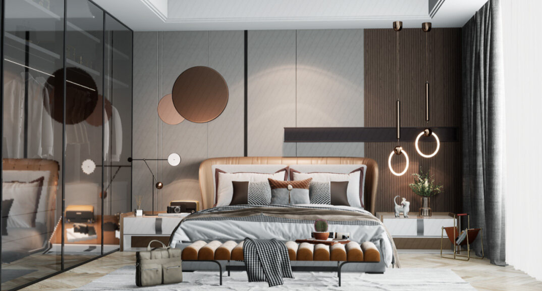 白鷺灣214㎡別墅主臥現(xiàn)代輕奢風(fēng)格裝修案例效果圖