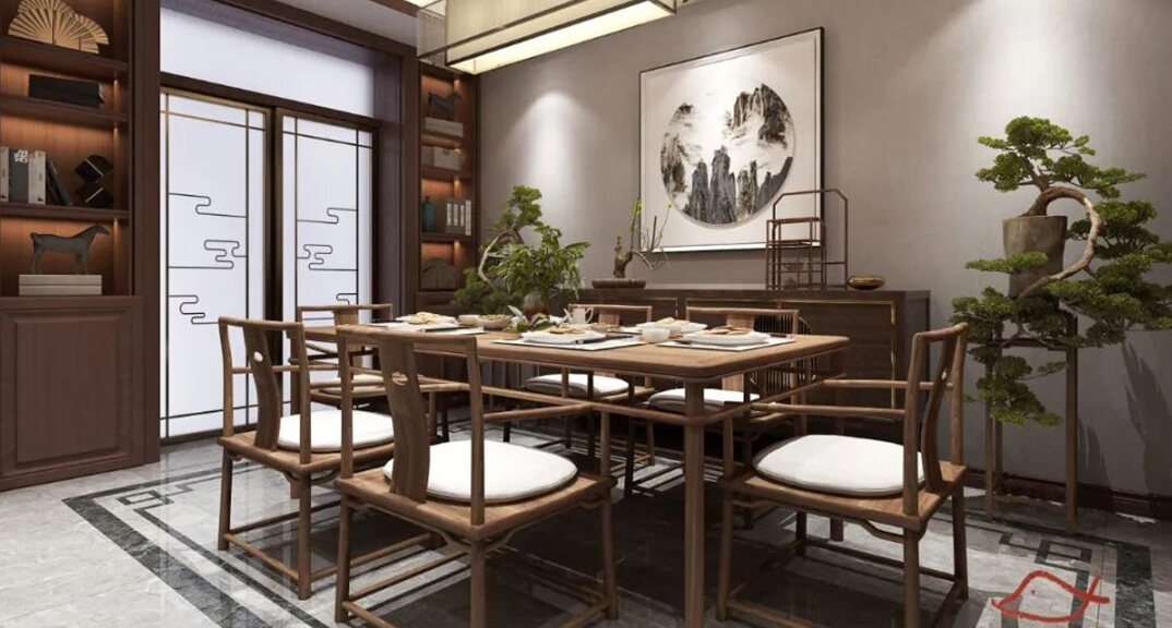 北海錦華352㎡別墅客餐廳新中式風(fēng)格裝修案例效果圖
