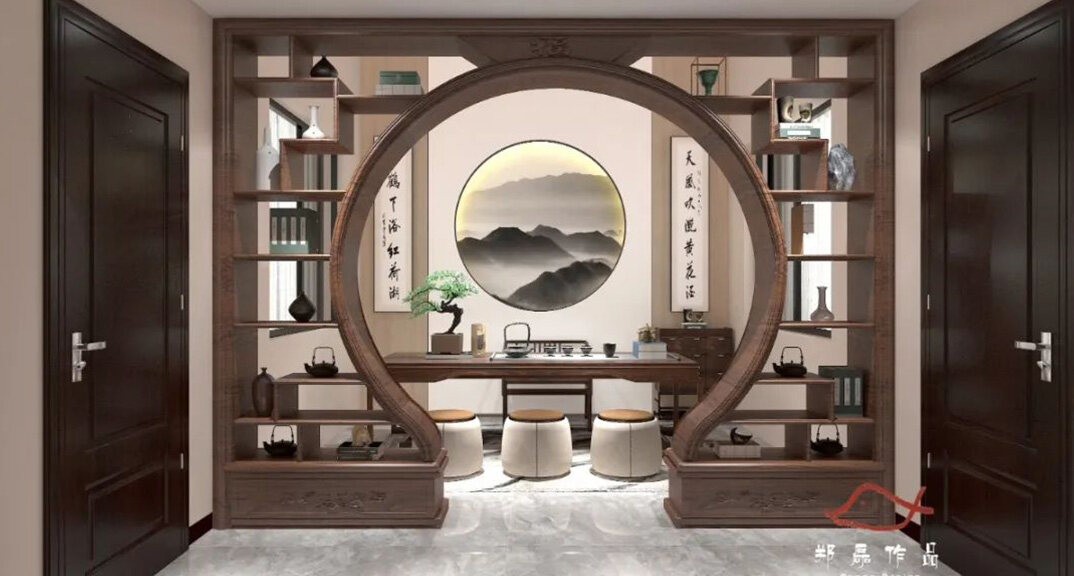 北海錦華352㎡別墅茶室新中式風(fēng)格裝修案例效果圖