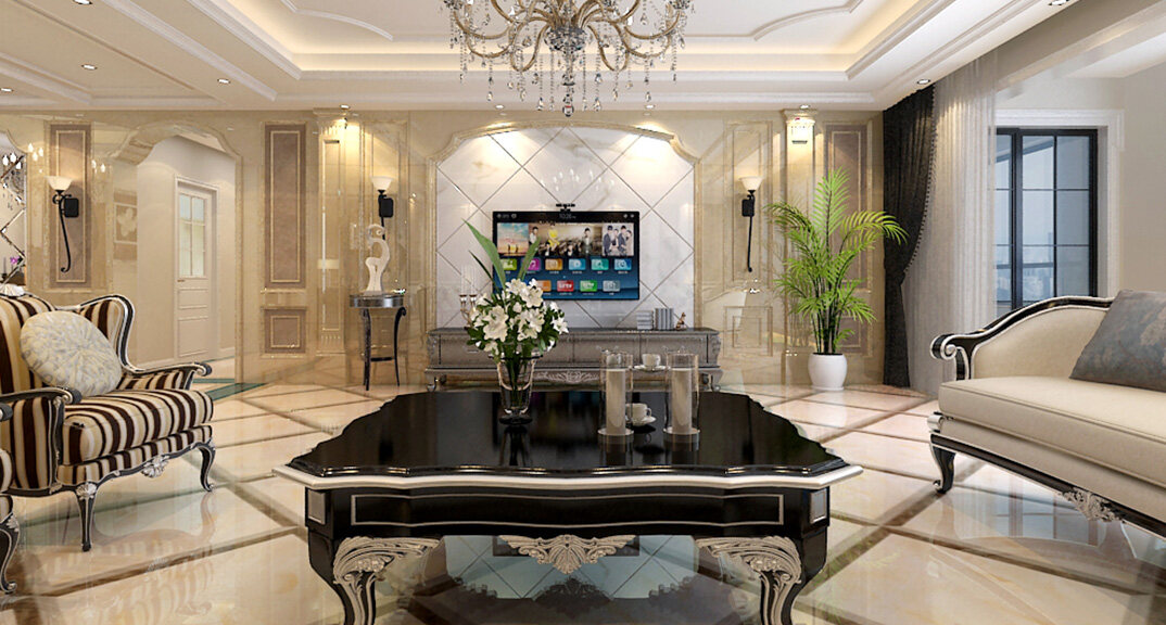魯潤(rùn)靜園234㎡四室兩廳客廳簡(jiǎn)歐風(fēng)格裝修案例效果圖