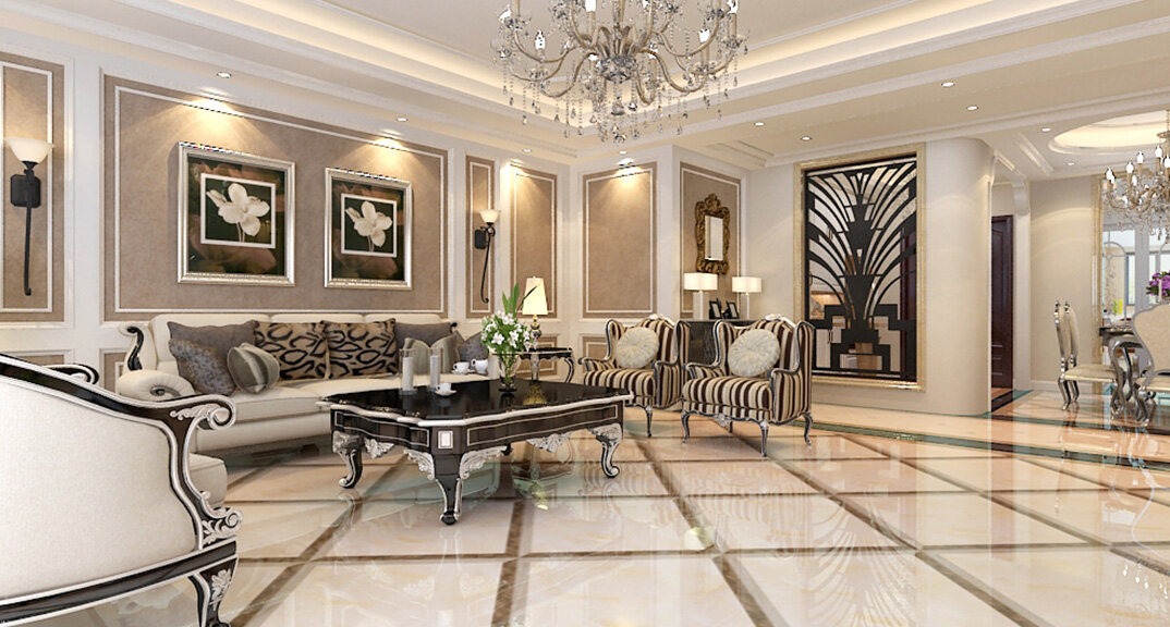 魯潤(rùn)靜園234㎡四室兩廳客廳沙發(fā)簡(jiǎn)歐風(fēng)格裝修案例效果圖