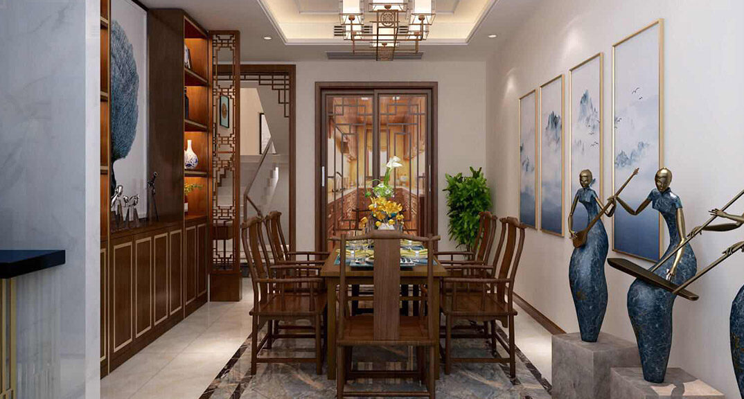 自建別墅360㎡別墅餐廳中式風(fēng)格裝修案例效果圖