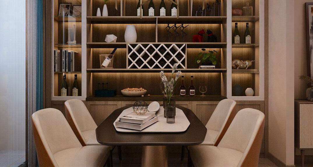 簡(jiǎn)約風(fēng)格的特點(diǎn)是將設(shè)計(jì)的元素,色彩,照明,原材料簡(jiǎn)化到最少的程度但對(duì)色彩,材料的質(zhì)感要求很高,因此,簡(jiǎn)約的空間設(shè)計(jì)通常非常含蓄,往往能達(dá)到以少勝多,以簡(jiǎn)勝繁的效果。此居室整體采用中性色調(diào),穩(wěn)重,大氣,卻又不失品味,令人眼前一亮的感覺(jué)。餐廳柜子以灰色,加上木飾面的點(diǎn)綴。分割出恰當(dāng)?shù)谋壤?,以?jiǎn)潔的造型,完美的細(xì)節(jié),延續(xù)整個(gè)風(fēng)格的特點(diǎn),使個(gè)空間顯得簡(jiǎn)潔大氣。